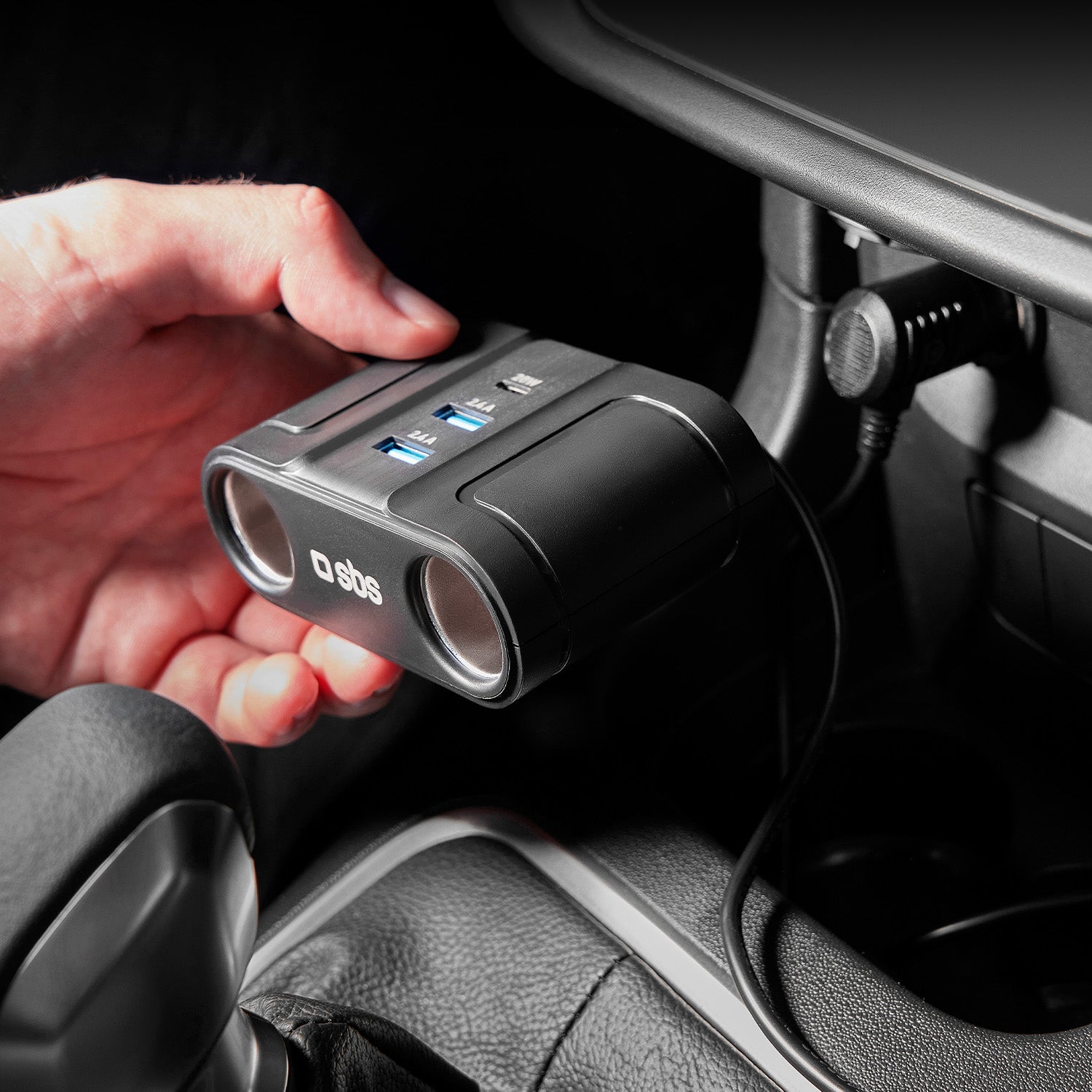 Lo splitter sdoppiatore da auto eroga energia a 100W e permette di ricaricare fino a 5 dispositivi allo stesso tempo. È dotato, infatti, di due porte USB-A, una porta USB-C e due porte circolari dedicate ad altri caricatori da auto.